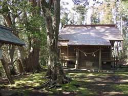 鎮守の森は椿や雑木のなかに楠の大木が茂り歴史を忍ばせています。こけむした境内では、時折ヒヨドリやモズの鋭い鳴き声に混じってメジロやうぐいすなどの鳴き声が静かな境内に響いています。