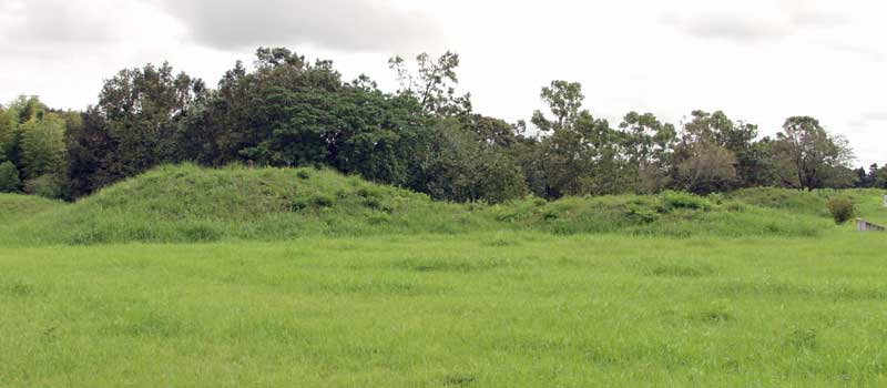 第1古墳群 西都原古墳群の南東端に位置し、全部で91基、前方後円墳7基・円墳84基があります。築造年代は1号墳が4世紀前半、13号墳が4世紀半ば46号墳は4世紀末、、202号墳は100年以上後の6世紀初頭に場所も西側に離れて築造されています。 1号墳81号墳同様、西都原古墳群の中で最も古いと思われる形の古墳の一つ、1号古墳は全く調査されていません。 13号墳
