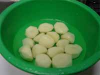 ジャガイモは3つに切り、面取りをして水にさっとさらし、水気を切る。