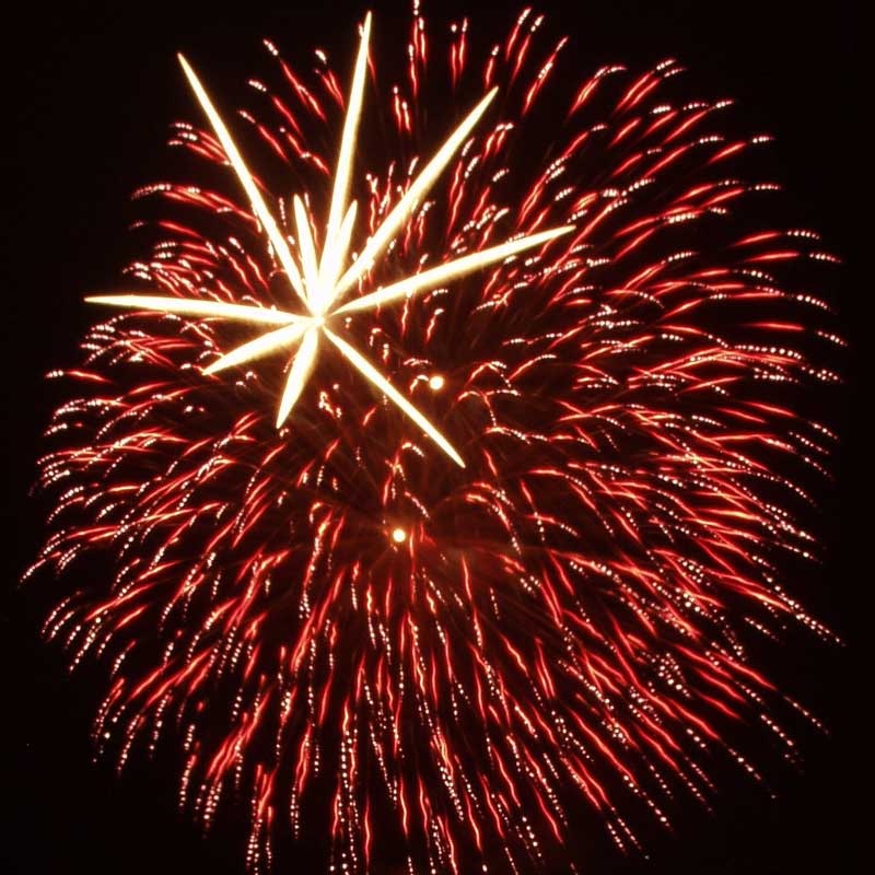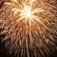 サマーフェスティバルin一ッ瀬(花火大会) 日時平成17年8月20日(土曜日) 20時から21時 場所 一ッ瀬川河川敷(国道10号線日向大橋下) 主催 サマーフェスティバルイン一ッ瀬実行委員会 佐土原町観光協会・新富町観光協会他 アクセス 当日は下記場所から無料シャトルバス(18時〜22時)が運行されます。 新富町文化会館、新富町西体育館 佐土原町役場、久峰総合運動公園 駐車場 一ッ瀬川河川敷他(大変混雑します) 花火大会の時間帯は国道10号線が大変混雑します。 特徴 打ち上げ花火約6千発 宮崎県下では最も大きい花火尺玉が60発上がりました(尺玉の数では宮崎県内花火大会最大です)。 花火打ち上げは都城市柿園花火、工夫を凝らした花火が見物です。 花火の大きさは3号(9cm,120m,30m)4号(12cm、160m、65m)5号(15cm190m、85m)6号(18cm、220m、110m)7号(21cm、250m、120m)8号(24cm、280m、140m)10号尺玉(30cm、330m、150m)20号(60cm、500m、240m)30号(90cm、600m、275m)の様に分かれています、()内の数字は花火の直径、打ち上げ高さ、開いた花火の半径を表しています。 花火のことを詳しく知りたい方は日本の花火のWebサイトをご覧下さい、日本全国の花火大会から写真の取り方まで詳しく説明されています。 下の写真は2005年サマーフェスティバルin一ッ瀬の様子です、写真がヘタですが雰囲気は判ると思います。 最初はいきなり小さめのスターマインで始まり、菊や牡丹の単発が僅かにあって連発連発の連続です。 牡丹:どーんと言う音で開いて大きな花になる花火 菊 :どーんと開くのは牡丹と一緒だけど開くまで光が消えないで残る花火 二つとも日本独自の花火だそうで割物と言うそうです。 途中椰子やスターマインで盛り上がります。 今年初めて登場したのが千輪菊、シュポット上がってドーンと広がらない、あれ変だなと思っていたらぱっと千輪に開きました。 椰子:椰子の木のように一番高いところから光が少しに垂れてくる花火 スターマイン:沢山の花火を短時間に速く打ち上げる華やかな花火どの花火大会も最後はスターマインでフィナーレを迎えるようです。 途中にはポカ物や色々な花火を組み合わせたスターマインで盛り上がり最後は尺玉の八重菊・冠菊の連発でフィナーレを迎えます。 ポカ物:上空でぽかっと割れて中から細工した形が出てくるタイプUFOやリングなどがあります。 冠菊(かむろぎく):菊の変形で金色や銀色の花火の光が地上まで降りてくる花火みごたえがあります。 2005年は天候が気がかりだったせいか連発連発で尺玉の八重菊など綺麗な写真を撮ることが出来ませんでした。次の機会に再度挑戦です。