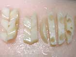 @ 生さけは40gの切り身にする。切り身に3mm位に包丁目を入れる。 | ![]() |