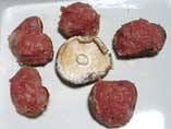 | A 生しいたけは軸を取り、裏側に小麦粉を茶漉しでふりかけ、@をナイフで山のように詰める。 | ![]() |