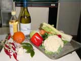 @ カリフラワーは小房に分け、玉ねぎは半分に切ってから半月に切る、にんじんは5mmの輪切り、きゅうりは2cmの輪切り、ピーマンは乱切り、セロリは筋を取り斜め切りにする。沸騰した湯でさっと火を通し水気を切る。 |