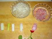 長ねぎは5cm位に切り込みを入れて中の芯をとり千切りにする。