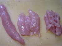 次にささみを切り、洗剤でしっかりまな板と包丁と手を洗い、ささみの茹で汁をかけるといいと思います。