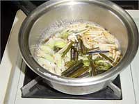 | B 鍋に出し汁、調味料を入れ、山菜を加えてさっと煮て冷ましておく。 |