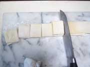 1枚づつはがし、片栗粉をはたきながら重ねていく。